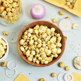 Fox nuts coated in creamy onion flavor.